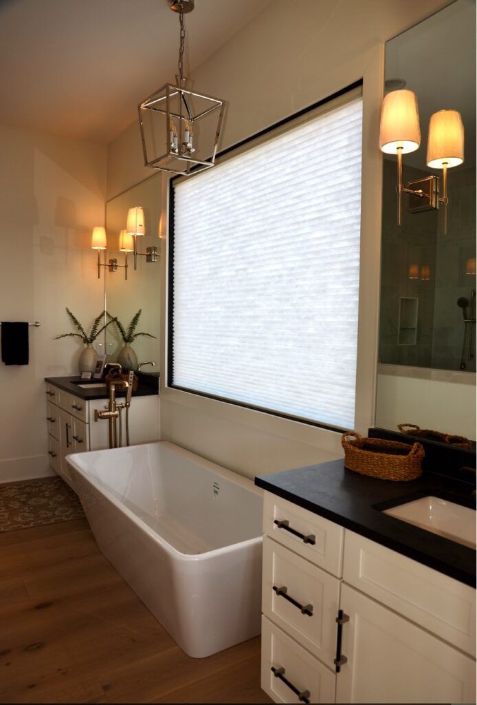 Ao contrário da maioria das opções compradas em lojas, persianas personalizadas podem ser motorizadasproporcionando a conveniência de controlar várias janelas com um controle remoto, smartphone ou comando de voz.